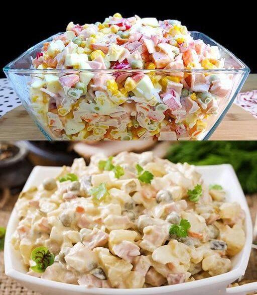 Koka först pastan. Medan den kokar, finhacka äpple, lök, paprika, gurka och skinka och blanda det med majsen.