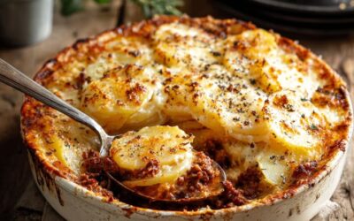 Ingredienser 900 g potatis, tunt skivad 450 g nötfärs 1 lök, finhackad 2 vitlöksklyftor, finhackade 2,5 dl tärnat bacon eller…
