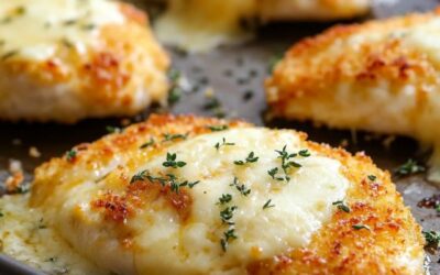 Ugnsbakade kycklingkotletter med vitlök och parmesan, smält ost
