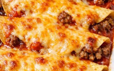 Ugnsbakad nötkötts-enchiladagryta Ingredienser 450 g nötfärs 1 tsk salt (valfritt, för att krydda köttet) 2,5 dl röd enchiladasås (1 liten…