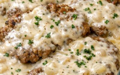 Ugnsbakad schweizerbiff med 4 ingredienser i gräddfil