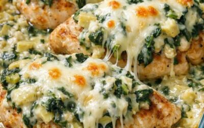 Ugnsbakad kyckling med spenat- och kronärtskocksdipp med 3 ingredienser Denna ugnsbakade kyckling med spenat- och kronärtskocksdipp med 3 ingredienser är…