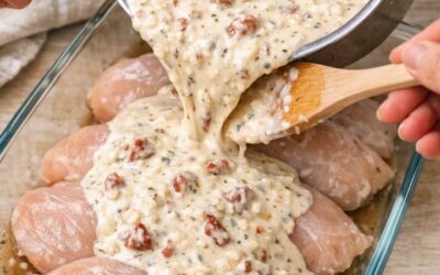 Krämiga kycklingbröst med soltorkade tomater över ugnsbakade kycklingbröst