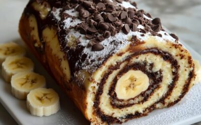 Ingredienser:– 4 ägg – 120 g socker – 100 g mjöl – 30 g kakaopulver – 2 mogna bananer – 100 g chokladbitar – 250 g stracciatellaost – 200 ml vispad grädde – Florsocker (till garnering) Instruktioner:. Värm…