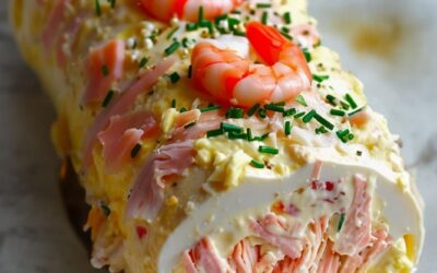 Salt tronchetto med marina smaker – krabba, rökt lax och räkor Ingredienser (6–8 portioner) Botten (”rulltårta” bas) 200 g krabbkött…