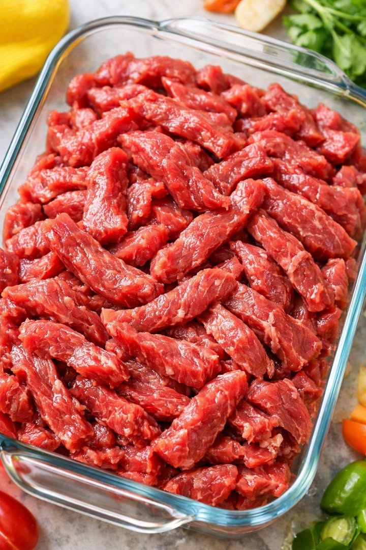 Denna ugnsbiff med fem ingredienser, perfekt för fattigmansskatt, är den typen av enkel och budgetvänlig middag som håller alla mätta och glada när livet (och räkningarna) hopar sig. Du slänger bokstavligen råa nötköttsstrimlor i en gryta av glas, lägger till fyra enkla basvaror och låter ugnen göra jobbet. Nötköttet blir mört, smakrikt och tillräckligt syrligt för att skedas över ris eller potatis. Det är den typen av måltid som min familj i mellanvästern ber om på hektiska vardagskvällar, särskilt när jag inte har energi för något kinkigt men ändå vill ha något som smakar som jag provat.