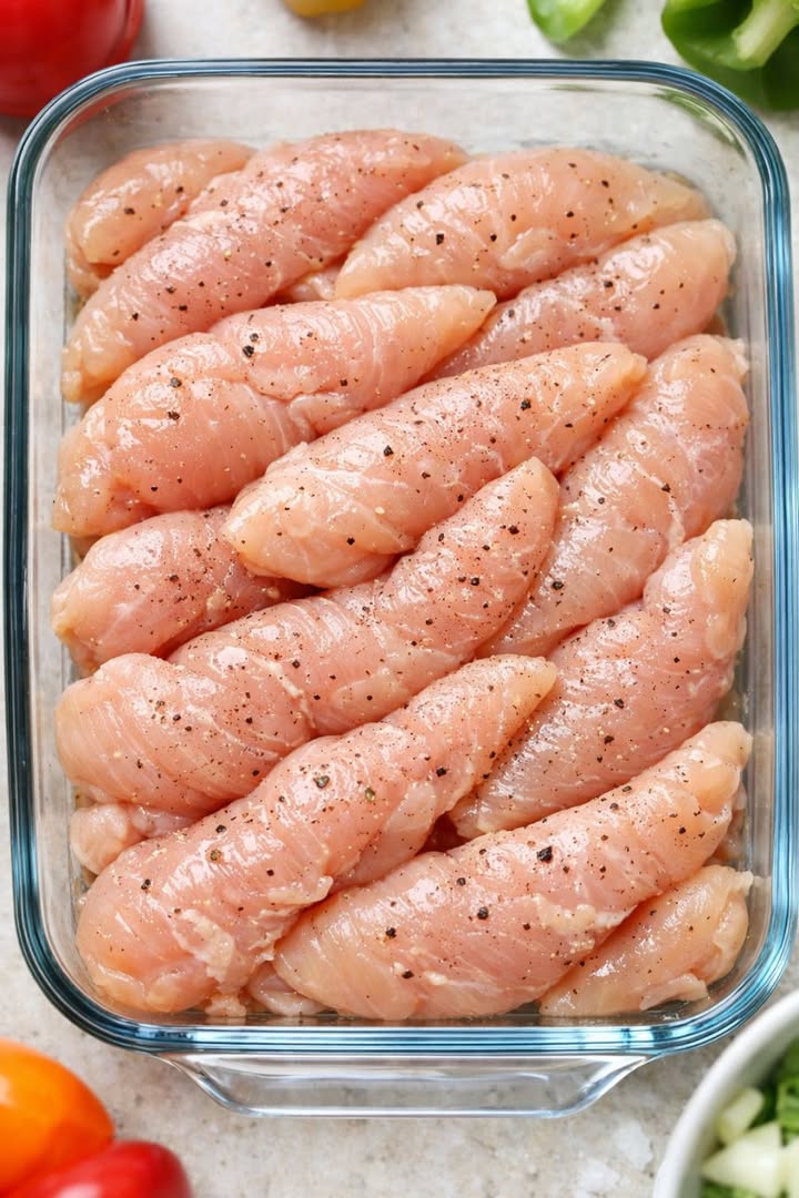 Denna ugnskyckling med 5 ingredienser och råa kycklingfiléer är den sortens livräddare för vardagskvällar som varje upptagen familj behöver. Du lägger bokstavligen de råa kycklingfiléerna i en gryta av glas, vispar ihop fyra vanliga basvaror, häller över och bakar. Resultatet är saftig, smakrik kyckling med en lätt karamelliserad sås som smakar som om du har krånglat i timmar. Den är perfekt för de kvällar då du vill ha något tröstande och hemlagat utan många steg eller smutsig disk, och den är så enkel att barnen också kan hjälpa till att montera den.
