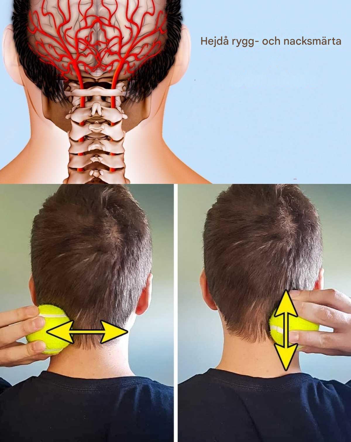 Ta en tennisboll och börja massera skallbasen i olika riktningar – vi pratar om massage, inte överdrivet tryck.