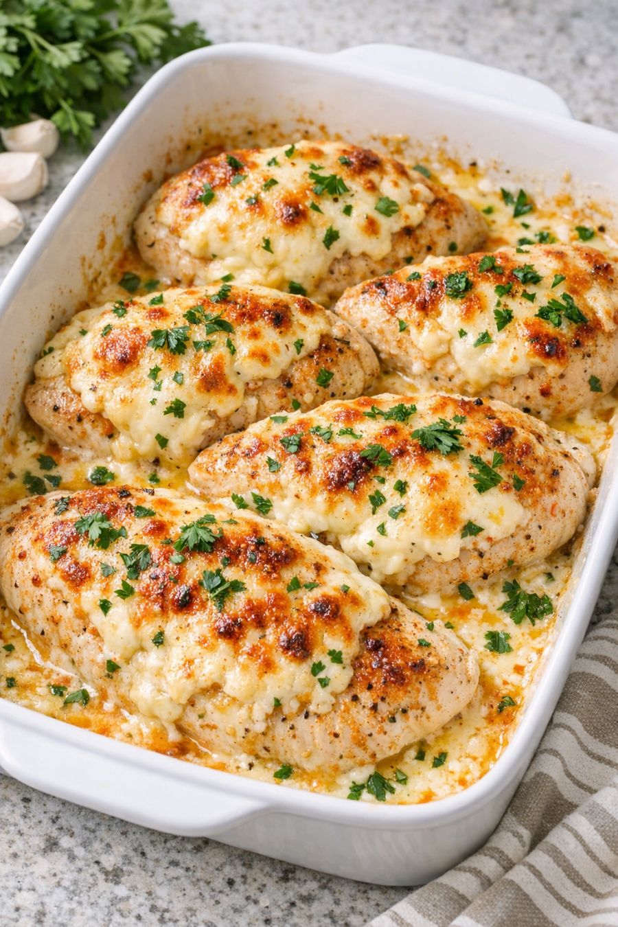 Lägg kycklingbröstena i den förberedda ugnsformen. Ringla över lite olivolja och krydda lätt med salt och svartpeppar på båda sidorna.
