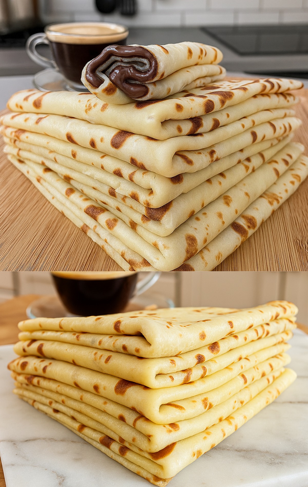 Detta recept på hemlagade crêpes är ett som vi har älskat att göra om och om igen i åratal 🥰👌. Enkelt, snabbt och idiotsäkert, det ger tunna, fluffiga och läckra crêpes. Oavsett om du gillar dem med Nutella, socker, sylt eller naturella, är dessa traditionella franska crêpes perfekta för ett mellanmål, frukost eller en mysig crêpekväll. 🤤😋