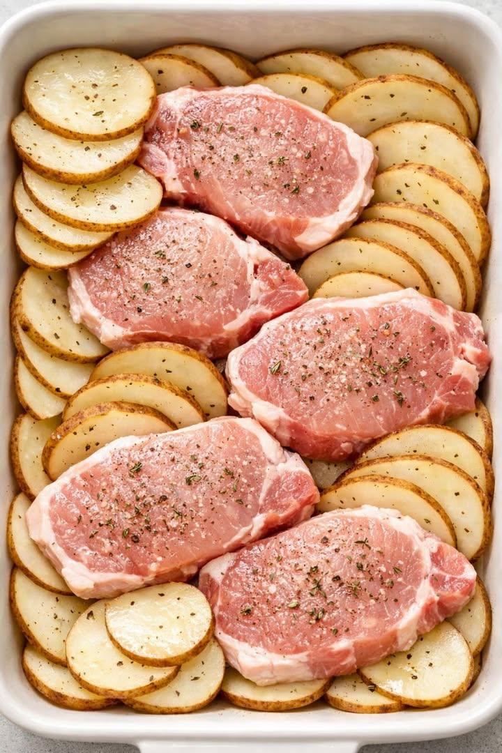Fläskkotlettpotatisgryta är en rätt som har varit en stapelvara vid kyrkliga sammankomster och söndagsmiddagar i mellanvästern i generationer. Den är enkel och rejäl: tunt skivade potatisar, lök och råa fläskkotletter, allt i en panna, som sedan långsamt bräseras tills de är mjuka och badas i en krämig sås. Det påminner mig om kvällar då sysslorna gjordes, köksfönstren ångade från ugnen och doften av middag spred sig hela vägen till ladan. Det här är den typen av måltid du lagar när du vill ha något pålitligt och tröstande, något som fyller huset med läckra aromer och lockar alla till bordet utan att behöva ropa ut deras namn. Om du letar efter en enkel middag i en gryta som känns som en kram i slutet av en lång dag, är denna gryta perfekt.