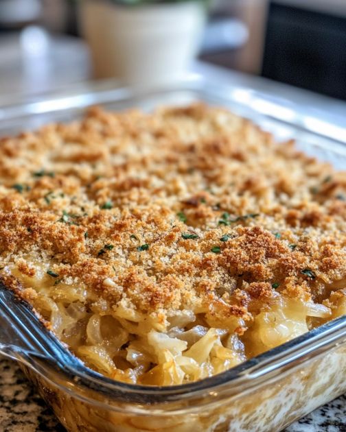 Lägg den karamelliserade löken i en ugnsform och fördela den jämnt.