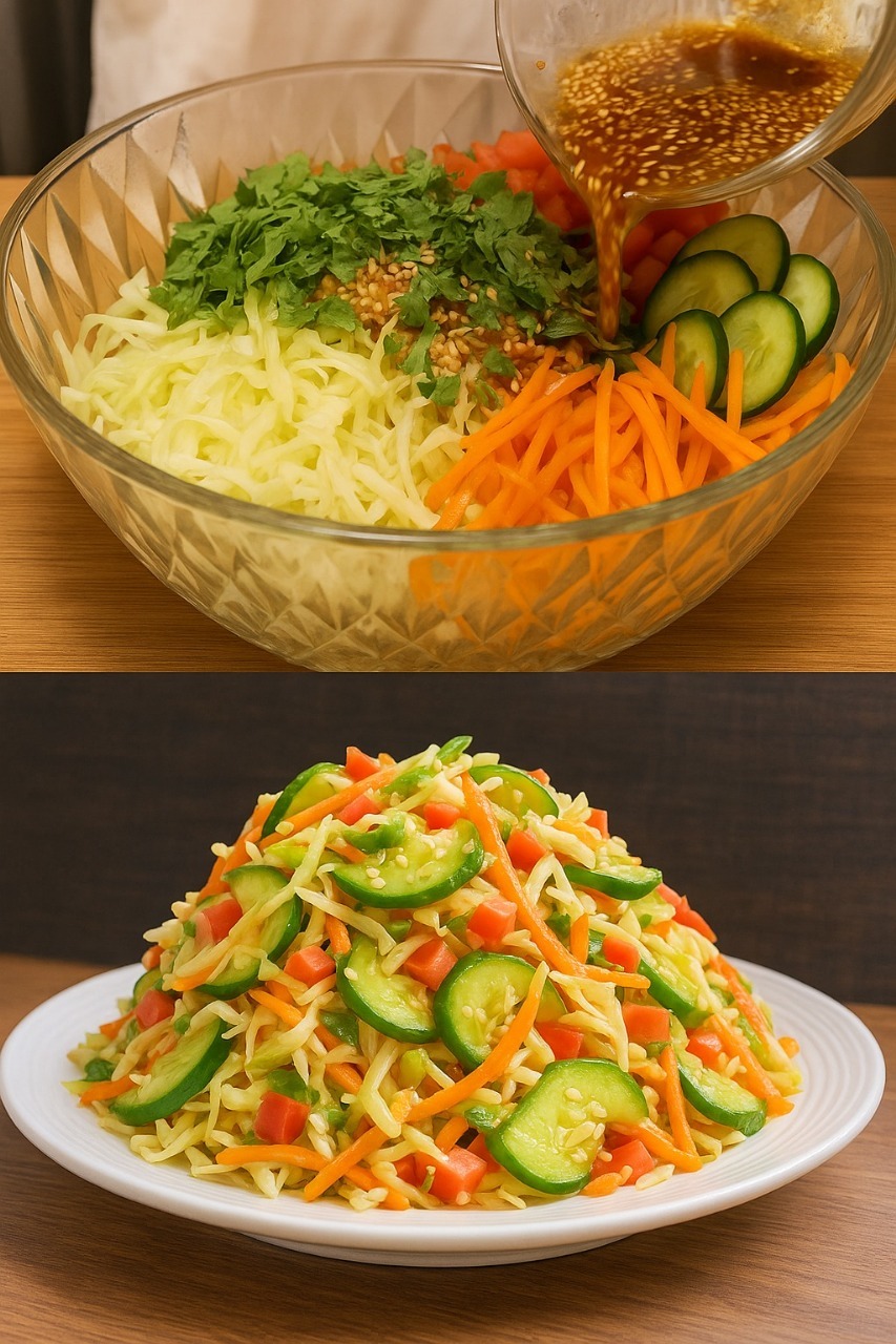 Letar du efter en lätt, återfuktande måltid som stödjer matsmältningen och hudens hälsa? Denna gurka- och kålsallad är en krispig, näringsrik rätt som är lika utsökt som den är nyttig. Med en pikant dressing och färska ingredienser är den perfekt för avgiftning, återfuktning och att minska uppblåsthet.