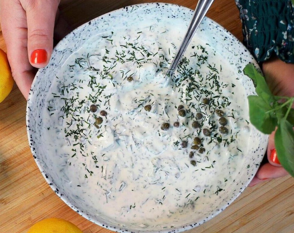 En ultrafräsch kall sås med dill och gurka, perfekt till bakad, stekt eller panerad fisk. Krämig, lätt citronig och mycket enkel att tillaga, förvandlar den vilken fiskrätt som helst till en sann njutning.