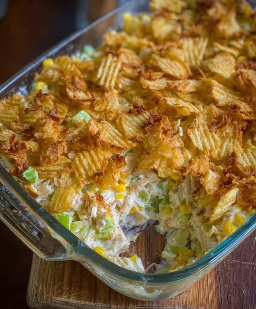 Denna gryta är för kvällar när du vill ha något varmt och mättande, men du vill också ha textur. Riktig textur. Inte bara "krämig med en nypa ost". Jag pratar om en rik, smakrik kycklingsalladsbas under en krispig, gyllenbrun topping som förblir krispig i kanterna och knastrar när du öser i den.