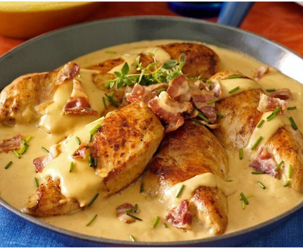 En krämig och smakrik kycklingrätt tillagad med dijonsenap, krispigt bacon och färsk gräslök. Snabb och enkel att tillaga, perfekt för en familjemiddag, serveras med potatis, ris eller grönsaker.
