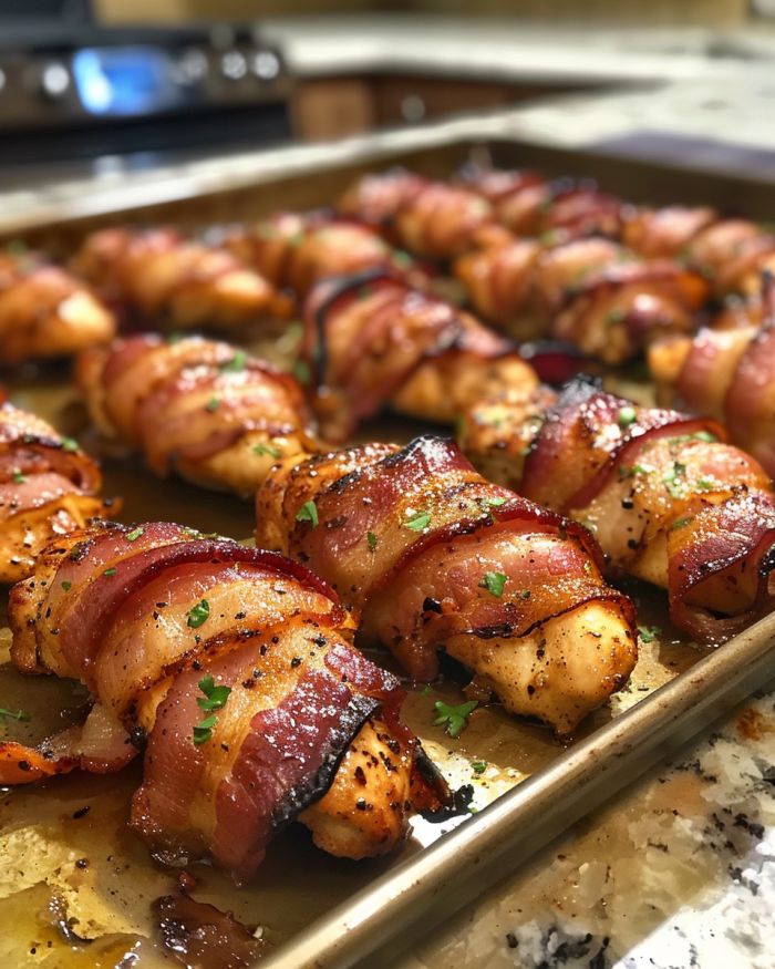 Baconlindade kycklingstrimlor är en härlig blandning av rökiga och salta smaker med en saftig, mör smak. Ursprungligen som en populär aptitretare i det nordamerikanska köket, är dessa strimlor perfekta för dem som följer en lågkolhydratkost, men de kompromissar inte med smaken. Perfekt för matchdagar, familjesammankomster eller till och med en mysig middag hemma, denna rätt kommer garanterat att bli en stapelvara i din kulinariska repertoar.
