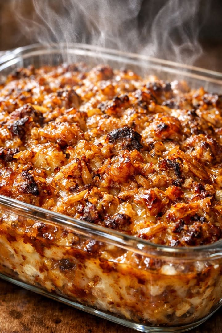 Värm ugnen till 200 °C. Smörj lätt en ugnsform av glas, ca 23 x 33 cm, så att grytan lossnar lätt och kanterna kan karamelliseras.