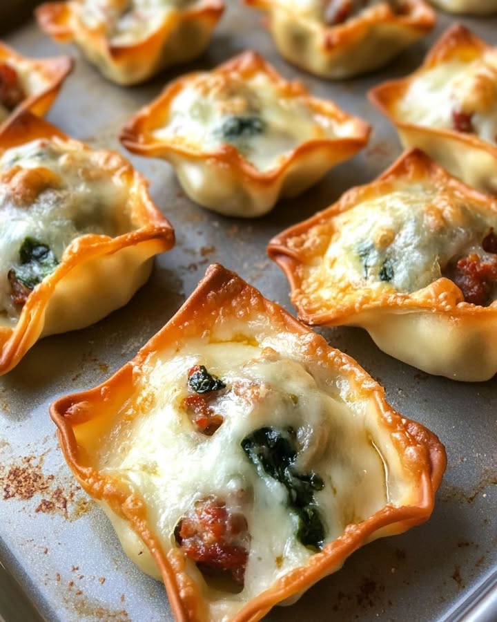 Lägg en tesked av korvblandningen i mitten av varje wonton-täcke.