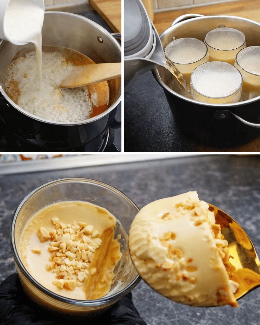 tillsätt varmt vatten halvvägs upp längs sidorna,