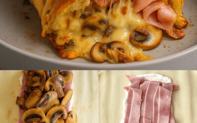 Ingredienser för 4 personer 1 ark smördeg 380 g skivade champinjoner 4 skivor kokt skinka 60 g riven emmentalerost 3…