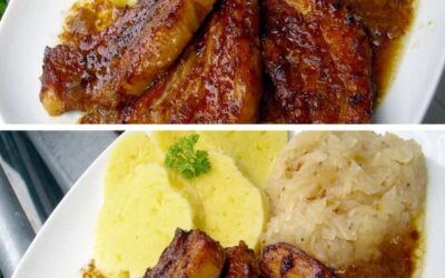 Rostad fläskmage i vitlök och öl med kålrabbi är ett utmärkt val om du vill servera en ärlig tjeckisk lunch…