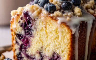 Saftig kaka med blåbär, krispig smuldeg och citronglasyr