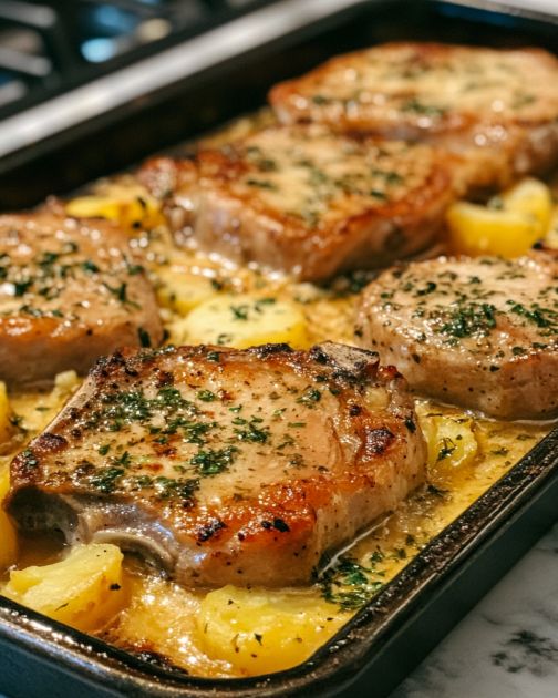 Senapsfrikade fläskkotletter med krämig potatisstekt potatis är en tröstande rätt som känns som en varm kram efter en lång dag. Denna måltid är perfekt för de kyliga kvällarna i mellanvästern när du längtar efter något rejält och mättande. De marinerade fläskkotletterna ger en syrlig smak som passar vackert ihop med de fylliga, krämiga potatisarna – en klassisk kombination som garanterat kommer att glädja alla vid bordet