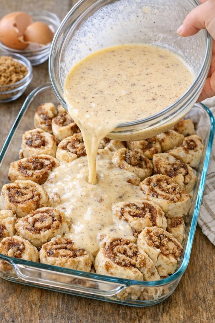 Servera denna varma, direkt från ugnen, med glasyren ringlad generöst över så att den smälter in i springorna. En skål med färska bär eller citrusklyftor hjälper till att balansera fylligheten, och en kanna varmt kaffe eller ett starkt svart te är en naturlig kombination. För en mer lyxig brunch kan du lägga till äggröra och krispigt bacon eller korv vid sidan av så att denna söta gryta kan fungera som en dessertliknande mittpunkt.