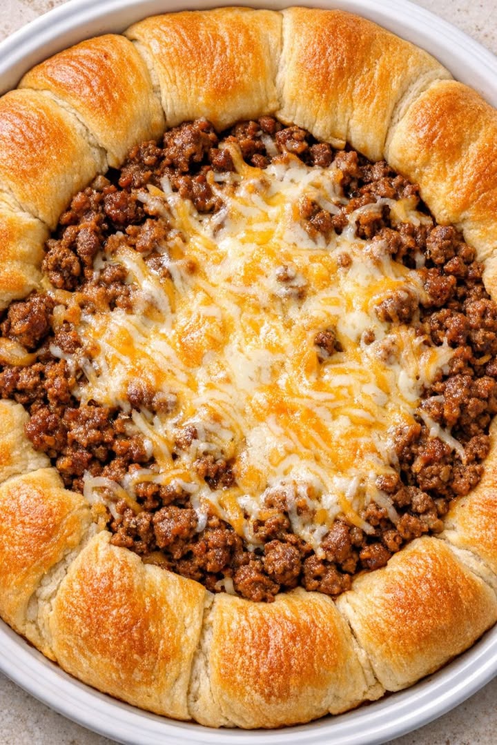 Placera en stor stekpanna på medelhög värme. Tillsätt nötfärsen och stek, bryt isär den med en sked eller spatel, tills den är brynt och inte längre rosa, cirka 6 till 8 minuter. Om det finns mycket fett i pannan, häll försiktigt av överflödigt fett så att skorpan inte blir blöt.