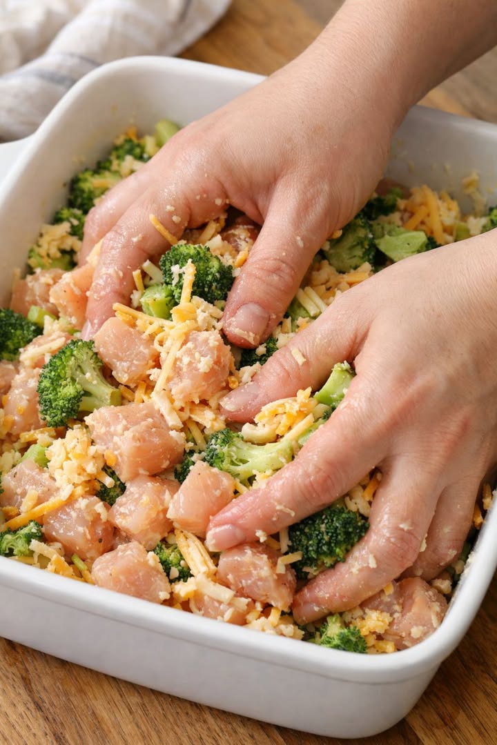 Fördela broccolibuketterna jämnt över kycklingen.