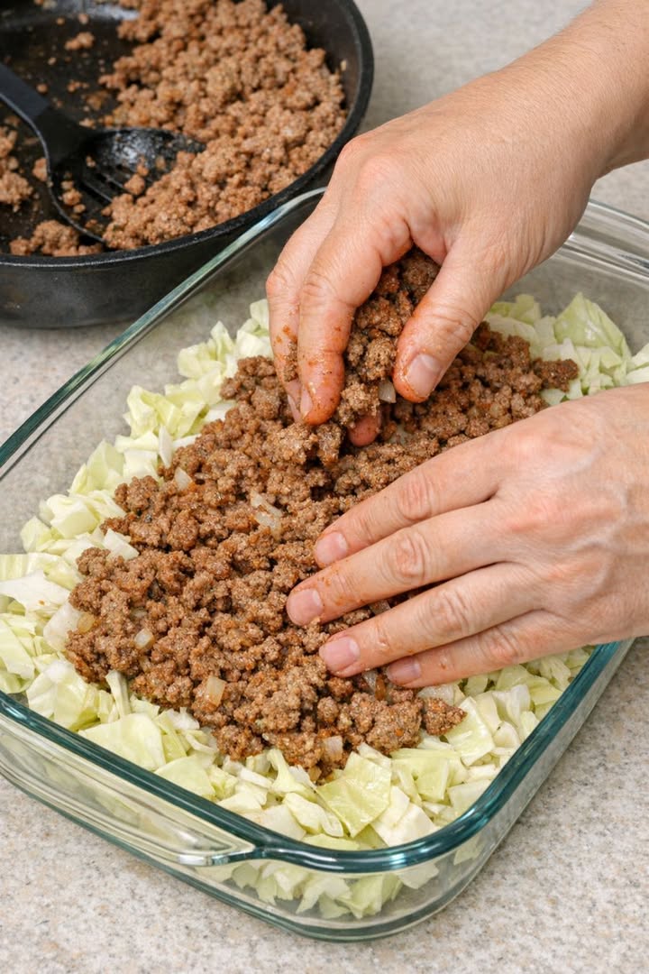 Denna ugnsbakade nötkötts- och kålgryta med 6 ingredienser är en av de där vardagsmåltiderna jag lutar mig till när jag är trött, hungrig och inte vill sitta barnvakt på spisen. Du varvar bokstavligen rå strimlad kål i en glasgryta, kryddar lite nötfärs och strör över med bara fyra skafferivänliga ingredienser. Den gräddas upp till en mysig, lite ostig och såsig gryta som känns som comfort food utan massor av förberedelser eller disk. Den är väldigt Mellanvästern-inspirerad – enkel, rejäl och gjord för hektiska kvällar när alla bara vill ha något varmt och mättande på bordet snabbt.