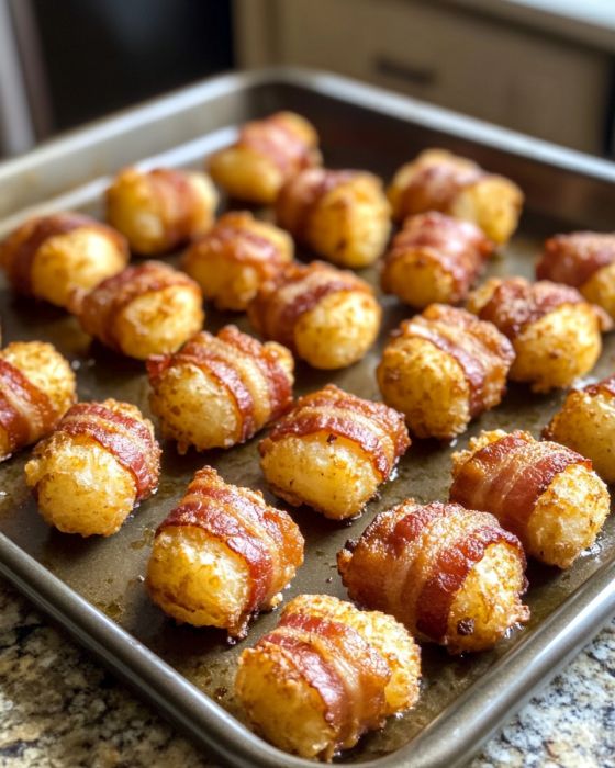 Har du någonsin haft en sådan där dag då du längtar efter något tröstande men ändå lite lyxigt? Här är mina bakade baconlindade tater tots! Dessa små himmelska bitar är en succé på varje sammankomst, från familjemiddagar till fotbollsfester. Jag började göra dessa när jag gick på college, och de har alltid varit en publikfavorit. Kombinationen av krispigt bacon och gyllenbruna tater tots är helt enkelt oemotståndlig. Dessutom är de otroligt enkla att göra, vilket är perfekt för någon som jag som jonglerar en hektisk karriär och min kärlek till matlagning.
