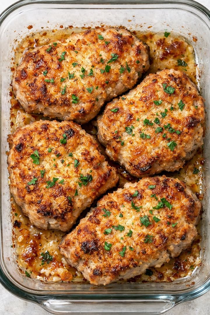 Ugnsbakade fläskkotletter med parmesanost och 3 ingredienser