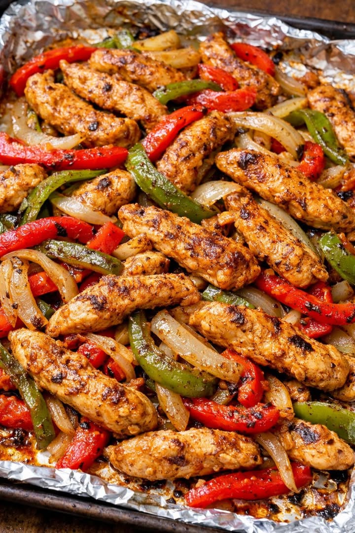 Ugnsbakade kycklingfajitas på plåt med 4 ingredienser