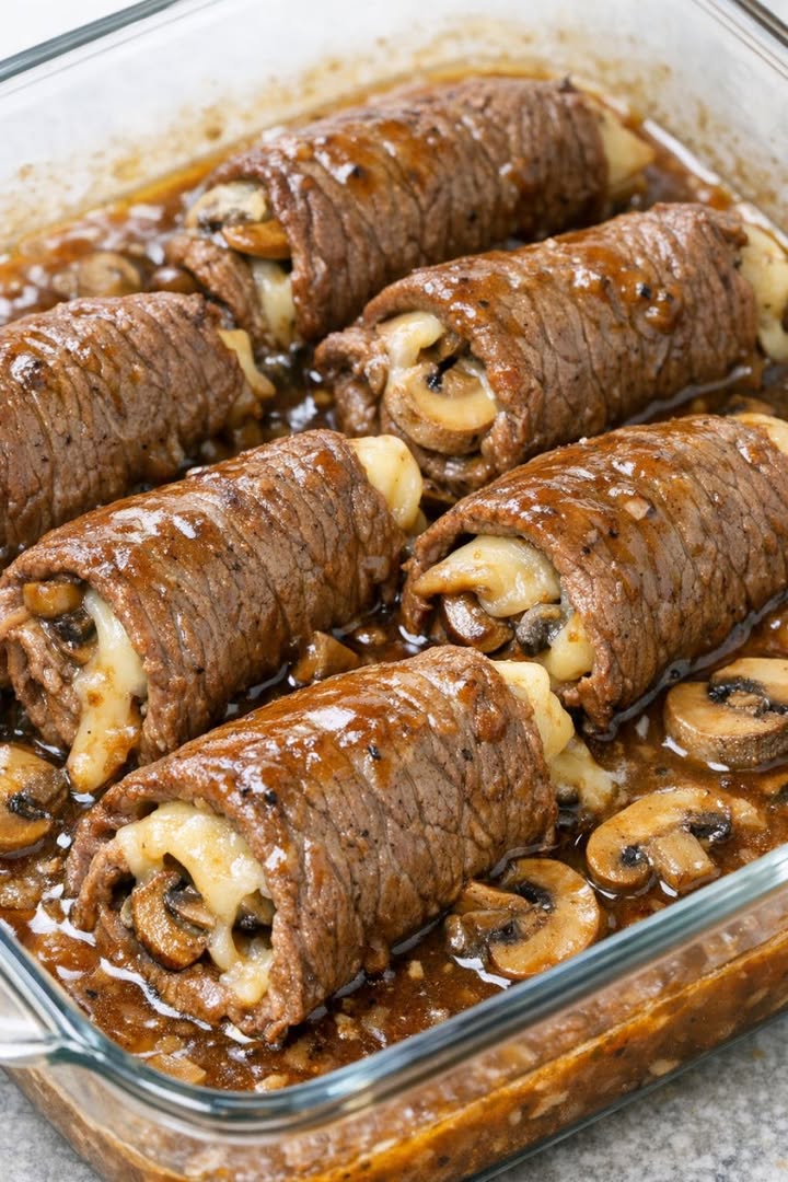 Min moster kom med dessa stekta schweizerostrullar med champinjoner förra veckan, och jag kunde ärligt talat inte tro att de bara bestod av fyra ingredienser. Det låter som något man skulle vilja mumsa på hela eftermiddagen, men det är faktiskt en enkel, mysig rätt i mellanvästernstil som man kan laga en hektisk vardagskväll. Tunna skivor nötkött rullas i schweizerost och konserverade champinjoner och bakas sedan i en fyllig brun sås tills köttet är mört och osten smält. Det är den typen av tröstande, enkelt recept som känns tillräckligt speciellt för sällskap men tillräckligt enkelt för en tisdag.