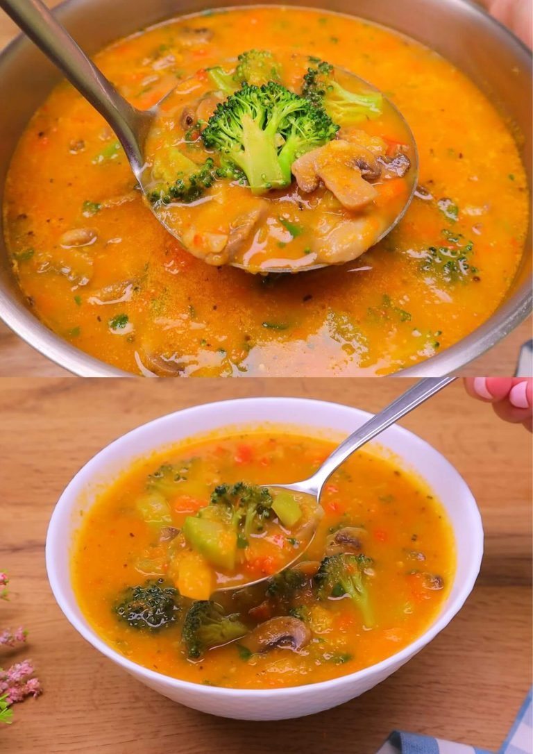 Tillsätt grönsaksbuljongen: Häll grönsaksbuljongen i en kastrull och täck över grönsakerna. Koka upp blandningen och låt sjuda i 15 minuter så att smakerna blandas.