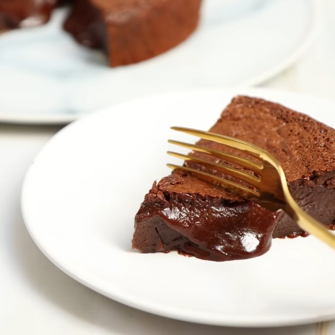 4️⃣ Blanda med chokladen, häll i en bakform och grädda i 25 minuter i 180°C.