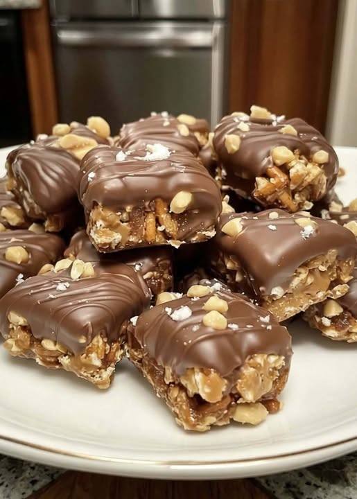 Dessa jordnötssmörspretzelbitar utan bakning är en oemotståndlig söt och salt godbit. De kombinerar jordnötssmörets krämighet med krispigheten av pretzels, allt täckt i silkeslen vit choklad. Ingen bakning krävs, de är perfekta för att tillfredsställa ett sött begär sent på kvällen, för en improviserad dessert eller att lägga till på en aptitretare. Ingredienser för jordnötssmörspretzelbitar utan bakning: Ingredienser: Minipretzels, grovkrossade: 2 koppar; Vita (eller halvsöta/mörka) chokladbitar: 1,5 koppar; Krämigt jordnötssmör: 1 kopp; Hackade jordnötter (valfritt): 1,5 koppar; Kokosolja eller smör (valfritt): 1 matsked; Havssaltflingor (valfritt): För garnering. Instruktioner: Steg 1: Förberedelse av ytan: Klä en stor bakplåt med bakplåtspapper eller en silikonmatta för att förhindra att pretzelsna fastnar. Steg 2: Smält…
